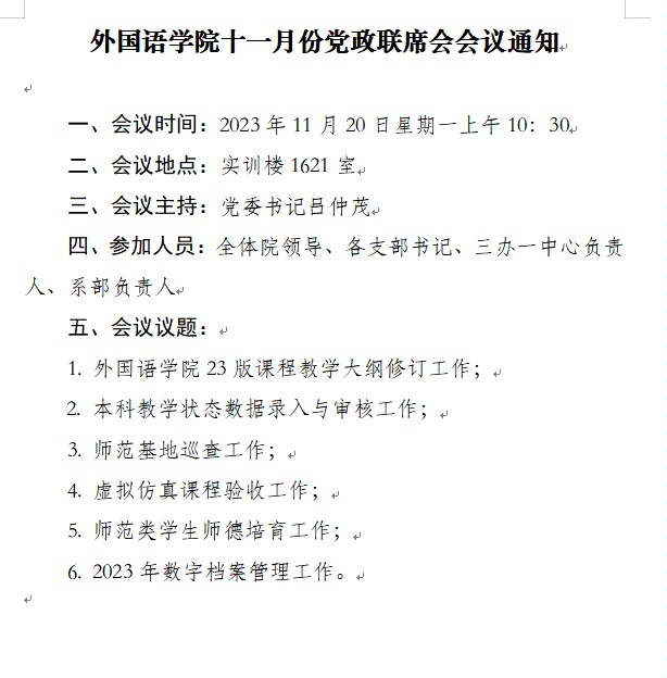 776net必赢官网11月份党政联席会会议通知