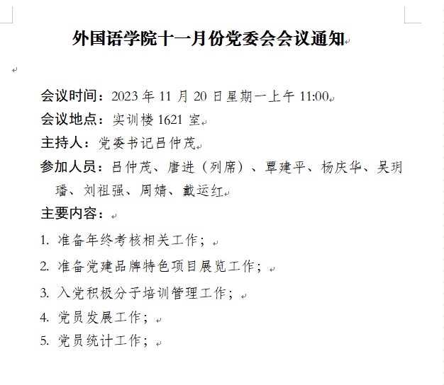 776net必赢官网11月份党委会会议通知