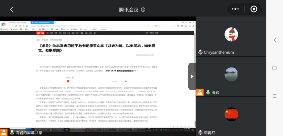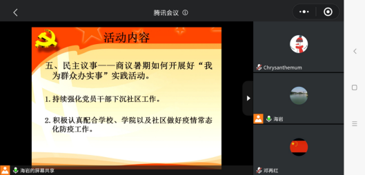 2021年7月22日下午15:00,776net必赢官网大学英语教工支部在腾讯会议平台开展了2021年7月份主题党日活动。大学英语教工支部全体党员同志严格执行参会制度,并按预定议程有序进行。