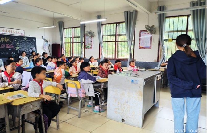上午,青马学员化身“青春引路人”,将专业知识转化为温暖课堂。在翠屏中村希望小学,学员许玲、刘永超精心设计“水果王国奇遇记”趣味英语课堂,融合情景互动与英文儿歌,寓教于乐,激发孩子们浓厚的学习兴趣;同时,青马班联合基础医学院开展“健康护航·科普同行”活动,唐琪琦示范心肺复苏,陈佳欣普及护眼知识,展现学员服务基层的担当。座谈会上,张凤仪提出“线上微课+周末送教”,李玉婷建议构建高校与乡村小学长效结对机制,推动资源下沉,彰显青年马克思主义者的使命与视野。