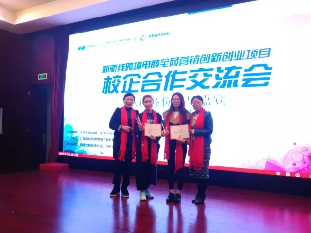在本次交流会上,776net必赢官网由于为新航线输出了众多优秀的人才并且在校企合作方面作出了突出的贡献,获得了新航线颁发的“人才培养杰出成就奖”、“孵化基地突出贡献奖”,并被授予“创新创业合作基地”。另外,新航线还从全国几百所合作高校由公司推荐安排实习的3000多名学生中优中选优,评选出6名业务能力突出、业绩优异的外贸新人,颁发“外贸新星奖”以示奖励。776net必赢官网13级商务班的陈雪、邱亚杰名列其中。
