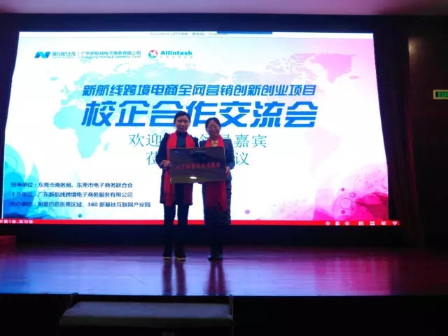 会上,新航线公司总经理孙媛女士还重点介绍了该公司2017年校企合作的新模式——新航线跨境电商全网营销创新创业项目进行了初步的介绍。该项目将会打造新型雇佣生态圈,一方面帮助企业实现全球贸易商业服务,另一方面帮助校方落地创新创业项目,助力人才成长。