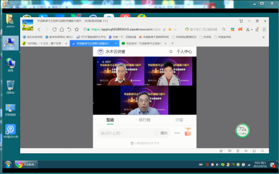 本次专题培训采用观看网络直播的形式,来自清华大学、上海交通大学、上海外国语大学、上海杉达学院的专家学者,从不同角度探讨了“外语教育守正创新与国际传播能力提升”的议题。上海交通大学教授杨惠中教授以“外语教材与思政教育”为主题,指出教材要追求“教有实效、学有实效”,要有先进的教学法理念,正确处理知识与技能的关系、理解与表达的关系,使学生在学习英语的漫长道路上能终生受益;清华大学教授张文霞教授基于当下大学英语教学相关的智慧教育教学和研究现状,分析和探讨了智慧教育背景下大学英语课程设置、教学设计、教学模式、教学评价、教学管理、教材研发以及教学研究等方面可能面临的发展机遇,并提出相关思考和建议;上海外国语大学张健教授通过分析新时代国际传播视阈下的大学英语教学的新问题,以教学翻译为切入点,结合大学外语教材编写的思路和版块特色,研讨了大学英语教学的生态环境、课程教学深度与创新思路。会后,776net必赢官网参与培训的教师进行了讨论,交流了学习心得体会。