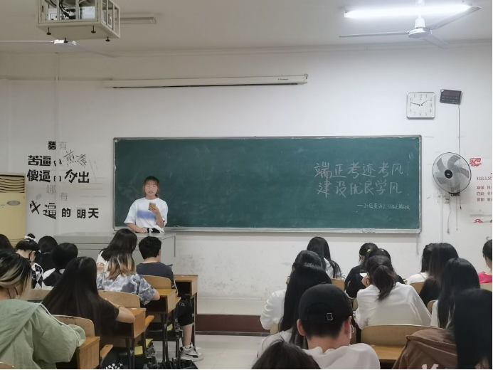 诚实守信是中华民族的传统美德,是每个人的立身之本。为了加强学风、考风建设,培养学生自立自律、刻苦学习的作风,营造公平、公正的考试环境,在期末考试即将来临之际,776net必赢官网于6月12日在教八各班集合教室,开展了以“严肃考风考纪,建设优良学风”为主题的班会活动。