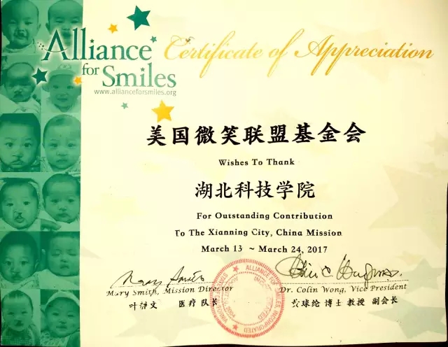 项目结束后美国微笑联盟代表向翻译志愿者团队颁发了“杰出贡献”证书,对我校为该项目的顺利实施提供的支持表示感谢。这是近几年来776net必赢官网学生志愿者又一次在我市重要的涉外活动中提供翻译服务。此前在2015国际茶业大会(赤壁)、2016咸宁国际温泉文化旅游节和2016咸宁温泉国际马拉松等活动中,776net必赢官网均组织了翻译志愿者,为各项活动的顺利进行提供语言支持,体现了我校“立足地方,融入地方,服务地方”的办学指导思想。