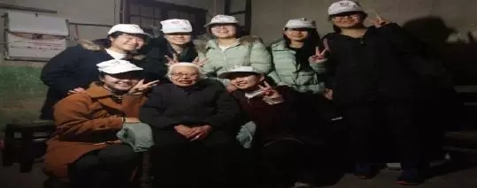 然而,另一位九十多岁奶奶家中的景象略有不同,五位志愿者围着老人坐着,认真聆听老人不易的青春岁月,了解到今天的生活来之不易。黑暗破旧的小屋,孤独而佝偻的背影,奶奶的生活不如人愿,可是奶奶依然放下过去的苦楚,憧憬新的生活。志愿者们询问老人的独居生活中有哪些不便,给老人时常疼痛的肩周和腰背做了简单的按摩,并给唱歌的老人打起了响亮的拍子。屋外雨声沥沥,屋内暖意融融。志愿者们的开导,与老人的亲密合影,终于,奶奶欣慰一笑……