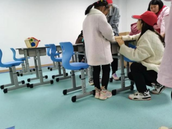 在此过程中,之前接触过志愿者的小朋友立马就认出了她们,跑上前抓住了志愿者的小手。而其他小朋友也与自己喜欢的志愿者组队,进行一对一的陪伴教学:志愿者利用手中的知识卡片教导小朋友们学习关于动物的知识,小朋友们也积极主动地配合,与志愿者们一起认识动物、练习单词;除此之外,志愿者还利用橡皮泥加深小朋友们对动物的认识,并鼓励他们自己动手从而培养动手能力。在保障孩子们安全的同时,志愿者还与他们进行了一些趣味游戏,如练字、拼图大赛、敲门小游戏等。轻松愉快的互动环节不仅增进了志愿者和孩子们的情感交流,也让他们孤独的内心对外敞开了一扇窗。尽管志愿者们与孩子们并不相熟,但此刻志愿者们仿佛就像是他们的亲人一般,细心地照顾着他们。