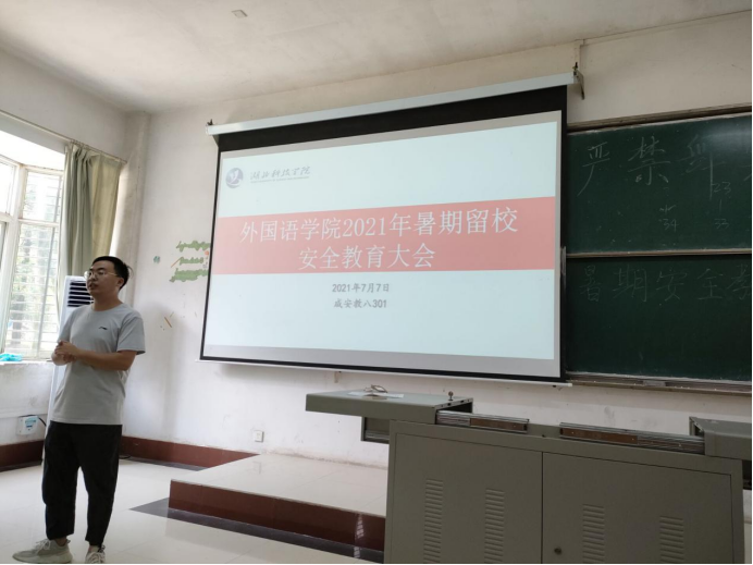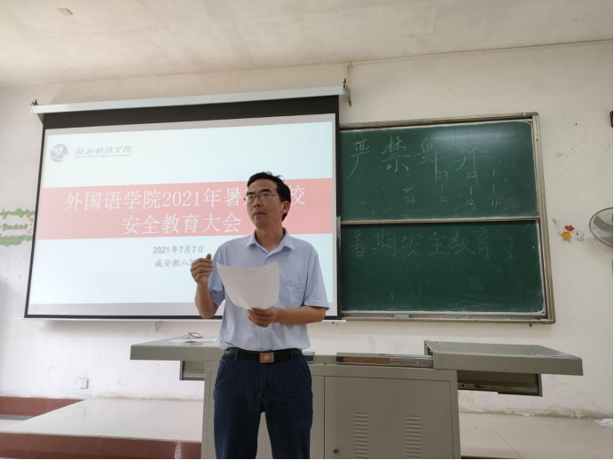 为贯彻落实学校2021年暑期留校工作方案,做好暑期留校相关工作,加强学生留校期间的安全相关意识,确保留校学生学习生活的顺利进行。776net必赢官网于7月7日上午11点10分在教八301开展了暑期留校安全教育大会,776net必赢官网党总支书记吕仲茂出席本次会议并作重要讲话。
