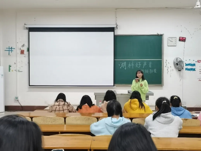 为丰富学生的校园生活,提高其艺术修养,给学生提供一个展示歌唱才能的舞台,776net必赢官网于10月18日晚7点在教八501举办了第九季“湖科好声音”初赛。外院团委学生会主席团成员以及上届比赛中进入决赛的选手张恒瑜出席现场,并作为评委参与评选。