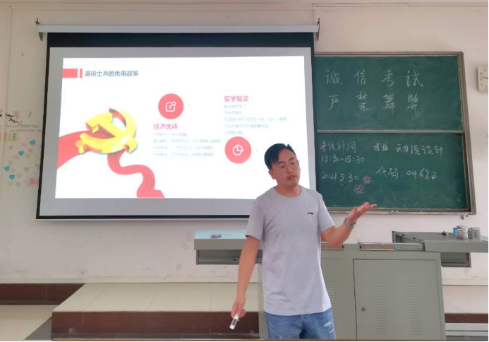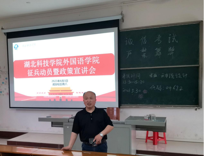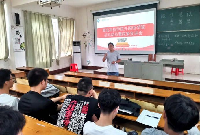 “‘中国梦’是强国梦也是强军梦”,为进一步提高大学生国防安全意识,鼓励、动员大学生参军入伍、保家卫国,为国防建设提供更多的新兴力量。6月3日上午11点10分,776net必赢官网于教八301开展了征兵动员暨政策宣讲会,776net必赢官网党总支副书记明庭鹤,辅导员刘祖强出席本次会议。