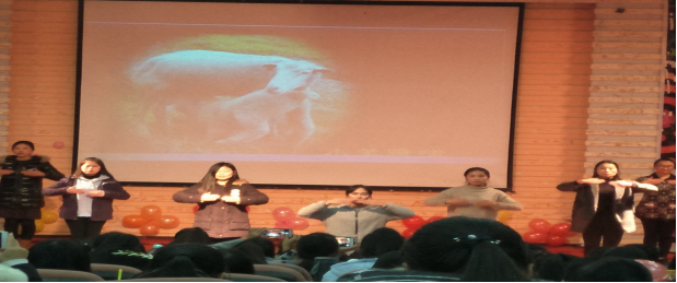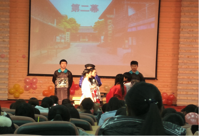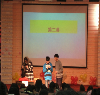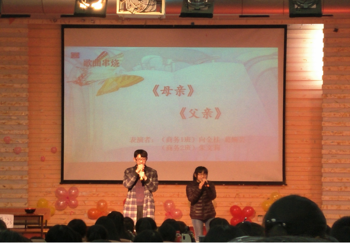 最为让人震撼的莫过于16级翻译班的《父亲,母亲》。剧情跌宕起伏,惹人心生悲悯,折射出这种时代背景下穷人的无奈与伤感。小品真情诉说了农村小孩考上大学后因家庭经济的不足所造成的父母外出挣钱受辱的画面,没有文化,饱受欺凌的父母含辛茹苦,毫无怨言,默默为孩子的学费苦苦坚守难得的小摊,朴实的父母终于因城里人的蔑视与侮辱而回到老家,临行前依然不忘为孩子奉上进城几月苦苦挣得的不多的钱,一幕幕催人泪下的表演,让多少观众无法释怀。可以说此场表演,将整个感恩活动推向了高潮,让整个“大厅”都热泪盈眶。艰难苦恨又何否,父母永远陪你走。