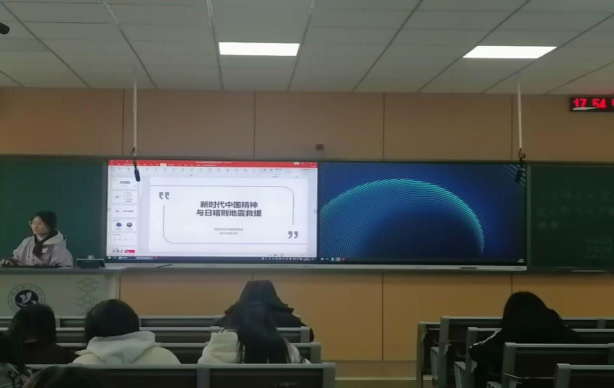 班会伊始,各班学习委员利用多媒体设备,向同学们展示了日喀则地震后触目惊心的场景:被毁的道路、残垣断壁的住房和惊恐焦虑的居民。紧接着,一段段救援现场的感人视频映入眼帘:救援人员争分夺秒地抢救生命,志愿者们无私奉献,为受灾群众送去温暖与希望。这些场景让在场的每一位同学都深受触动,感受到了人间的大爱与温暖。