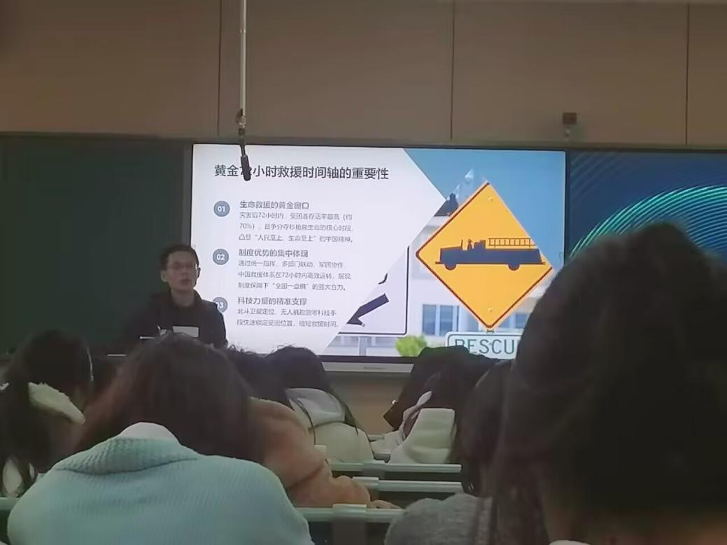 在讨论环节,同学们热情高涨、踊跃发言。有同学感慨:“在这次地震救援中,无数普通人挺身而出,化身守护生命的英雄,他们身上团结互助、无私奉献的精神,就是新时代中国精神的生动诠释。”还有同学分享道:“作为新时代的大学生,我们要以这些救援人员和志愿者为榜样,努力提升自己,未来用所学为社会贡献力量。”