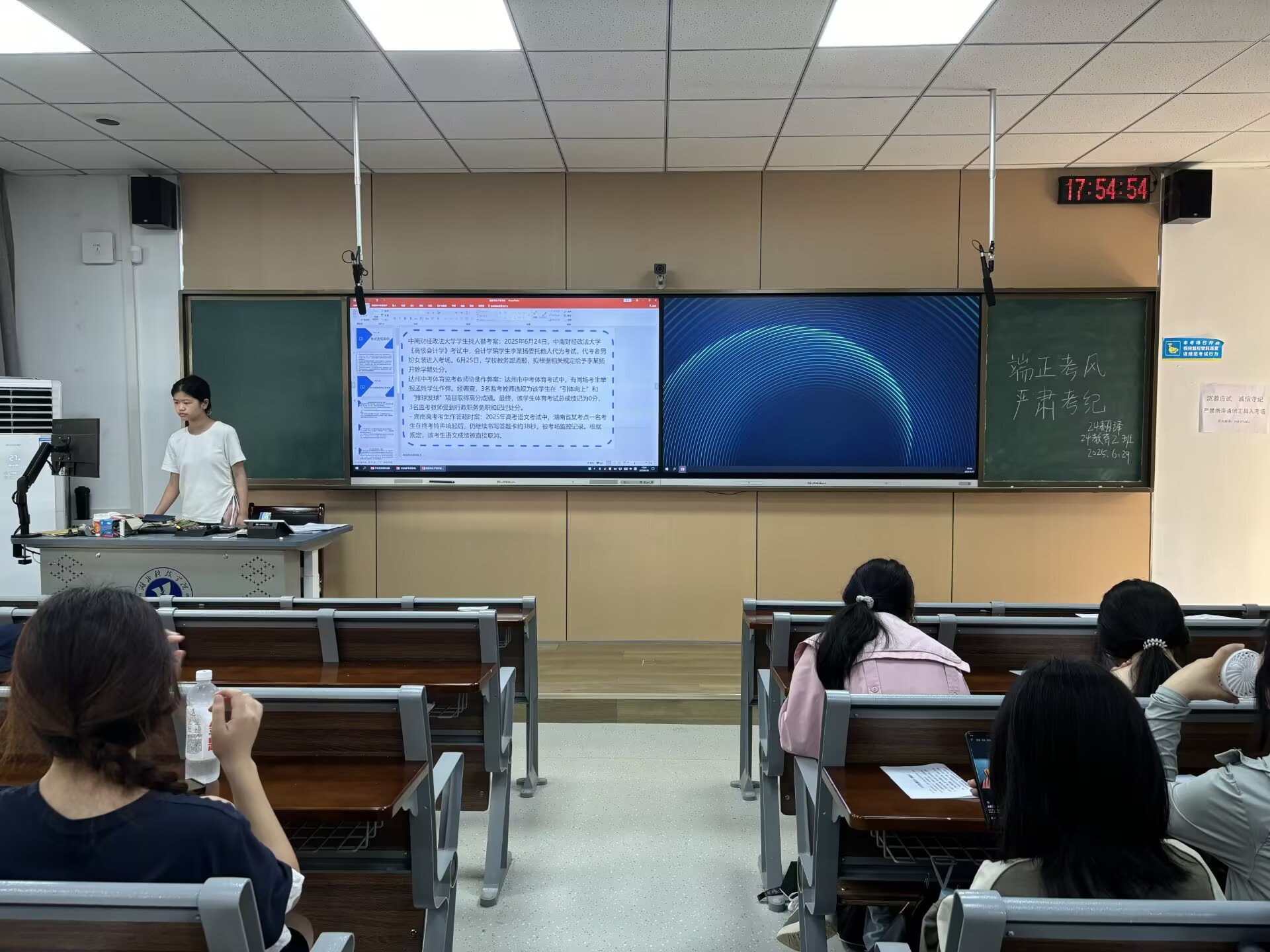 为营造公平、公正、严谨的考试环境,6月29日晚,776net必赢官网各班召开了以“端正考风,严肃考纪”为主题的班会。此次班会旨在通过深入动员与规则重申,将诚信应考的理念深植于每位同学心中。此次主题班会由各班学习委员担任主持人,22、23、24级全体同学参与。